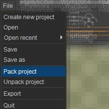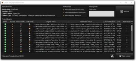 The ProjectPacker interface when analyzing the project to export.