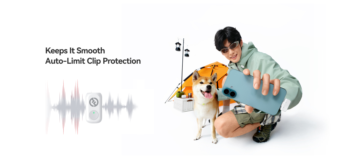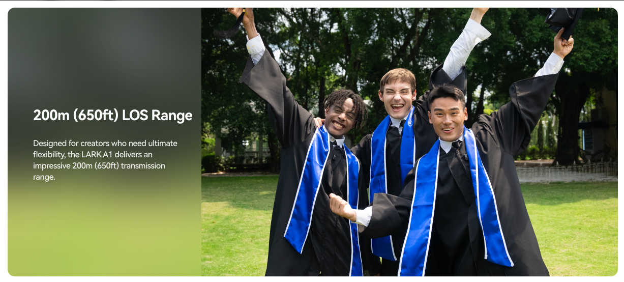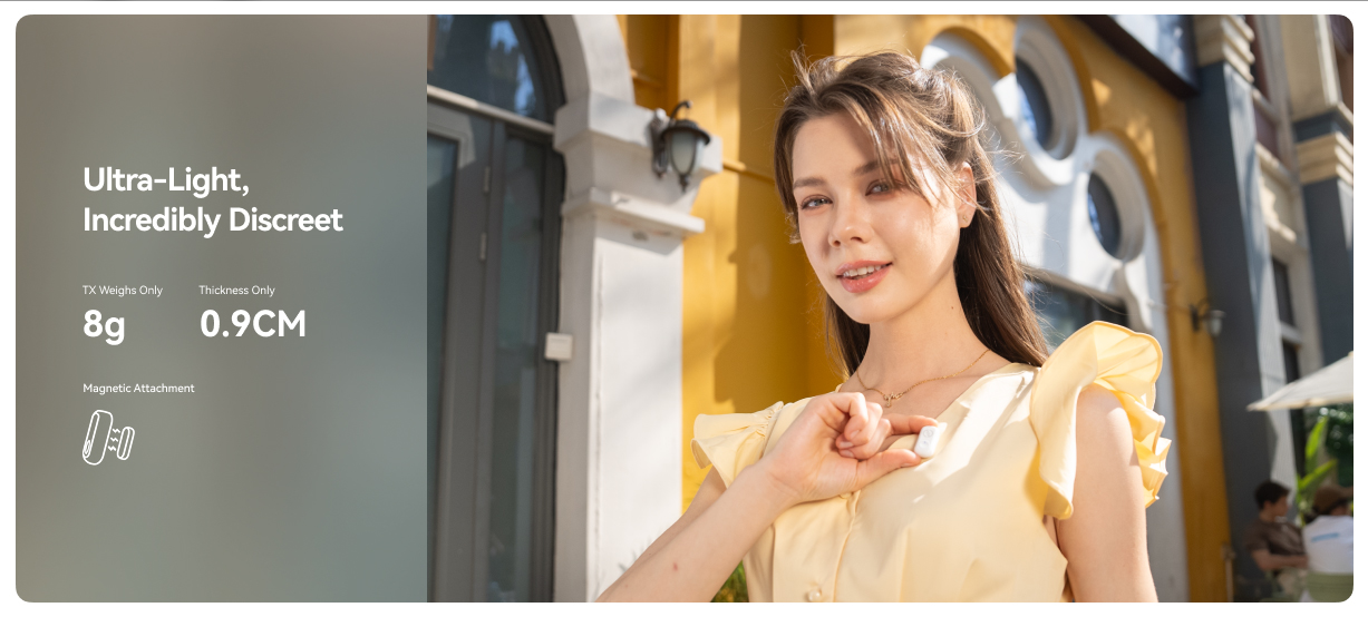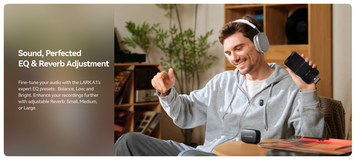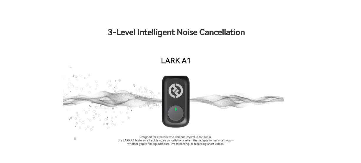 LARK A1 is a wireless microphone designed for seamless smartphone connectivity with plug-and-play simplicity. It delivers exceptional 48kHz/24-bit high-fidelity audio, capturing every subtle nuance accurately, while its 3-level intelligent noise cancellation ensures pure sound by eliminating ambient noise. The microphone offers customizable audio with adjustable EQ, Reverb, and 6-level gain control. Its intelligent auto-limit feature balances volume levels to maintain stable, distortion-free audio. With the charging case, two TX alternate seamlessly for up to 54 hours of continuous operation.