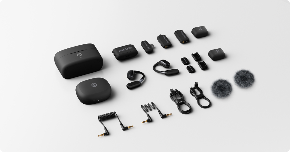 The LARK MAX 2 comes with various tailored options to perfectly meet your recording needs, each accompanied by accessories designed for every aspect of your recording experience. These include USB-C to 3.5mm adapter for connecting a lavalier microphone, furry windshield for outdoor recording, cable adapter for flawless connection, OWS earphones for instant monitoring and collaboration, charging case[7] for both immediate charging and convenient storage of the transmitter and receiver, and carrying bag to keep everything organized.