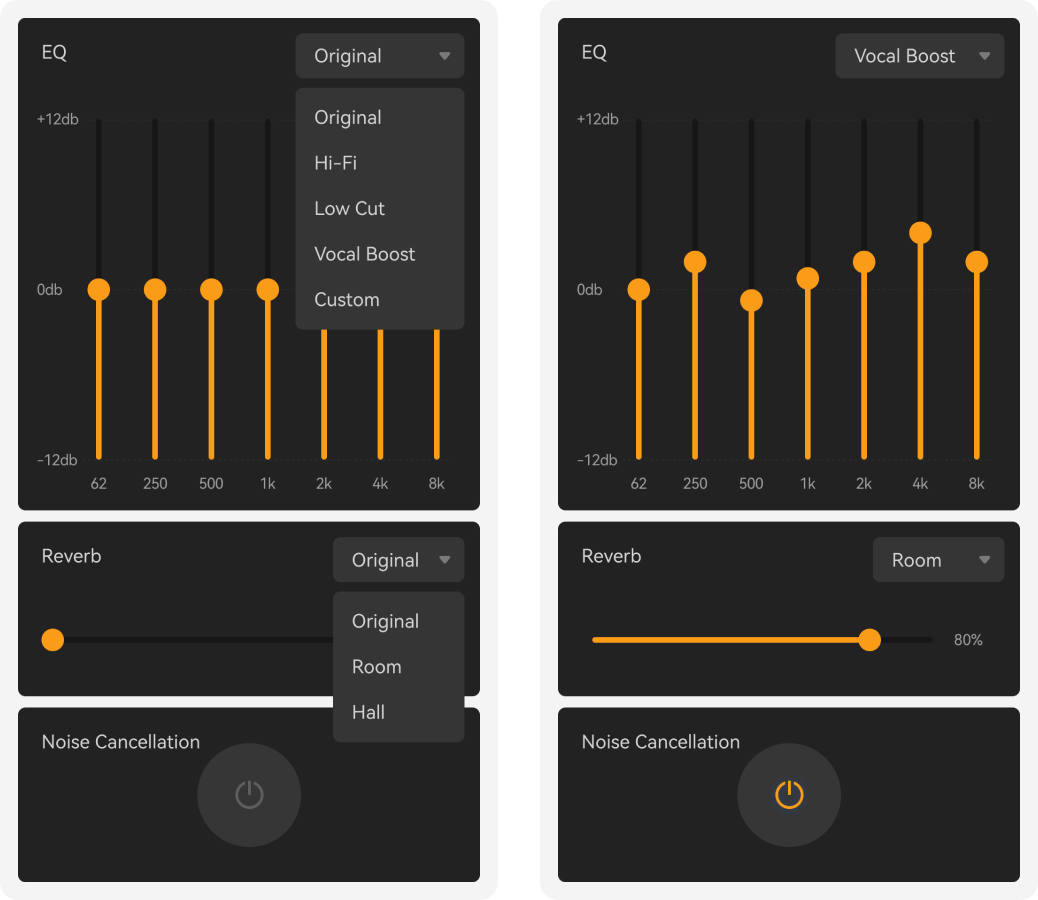 The VenusLiv V2 has a built-in sound card and supports quick and simple adjustments to high, medium, and low-grade reverberation and other sound effects. You can add various sound reverberations through system upgrades, which eliminates the need for separate sound cards. Sight and sound are all in one shot.