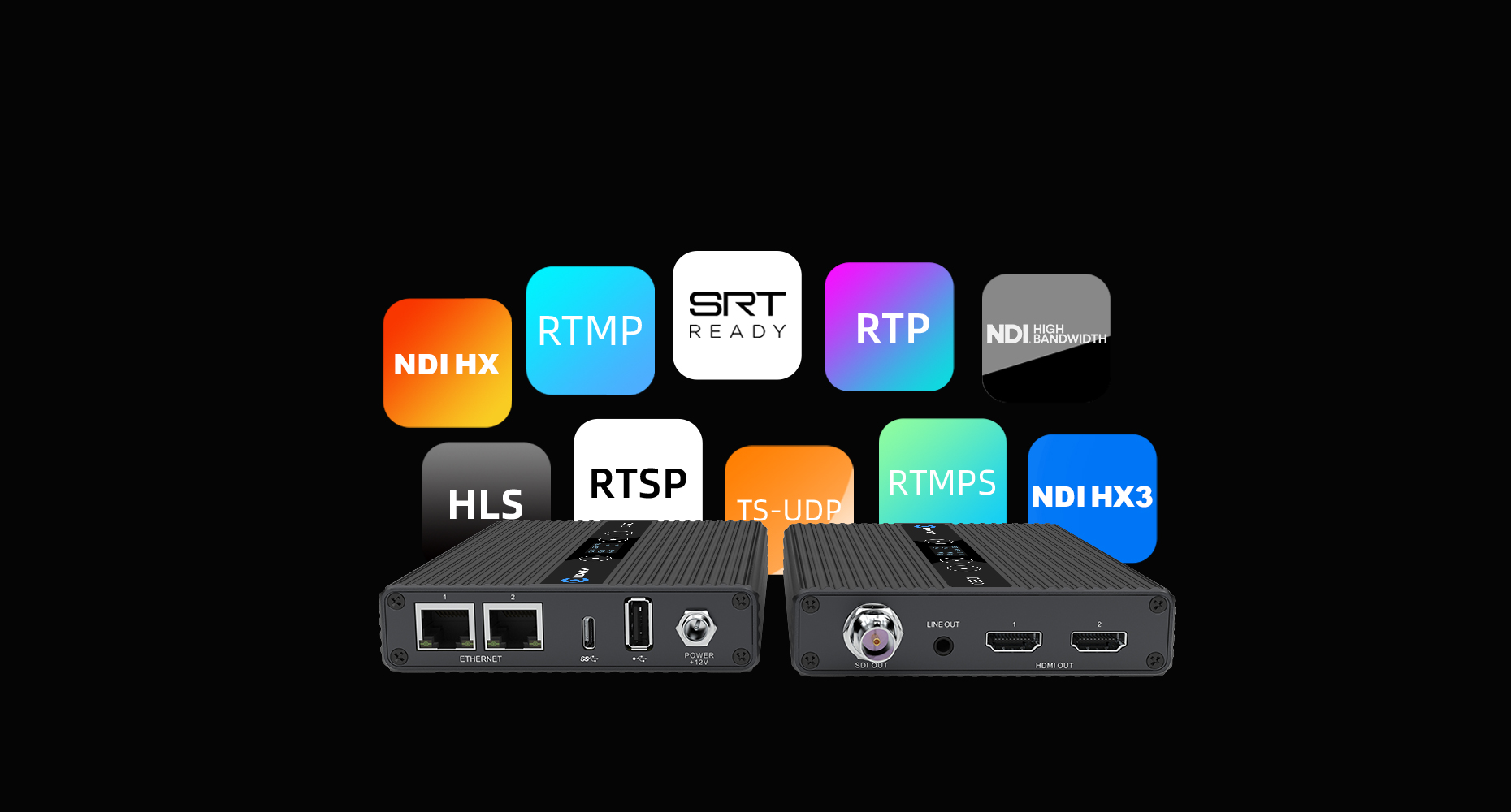 Streaming protocols | NDI|HB/NDI|HX2.0/NDI|HX3.0/SRT/RTMP/RTMPS/ HLS/TS over UDP/RTP/ RTSP |
