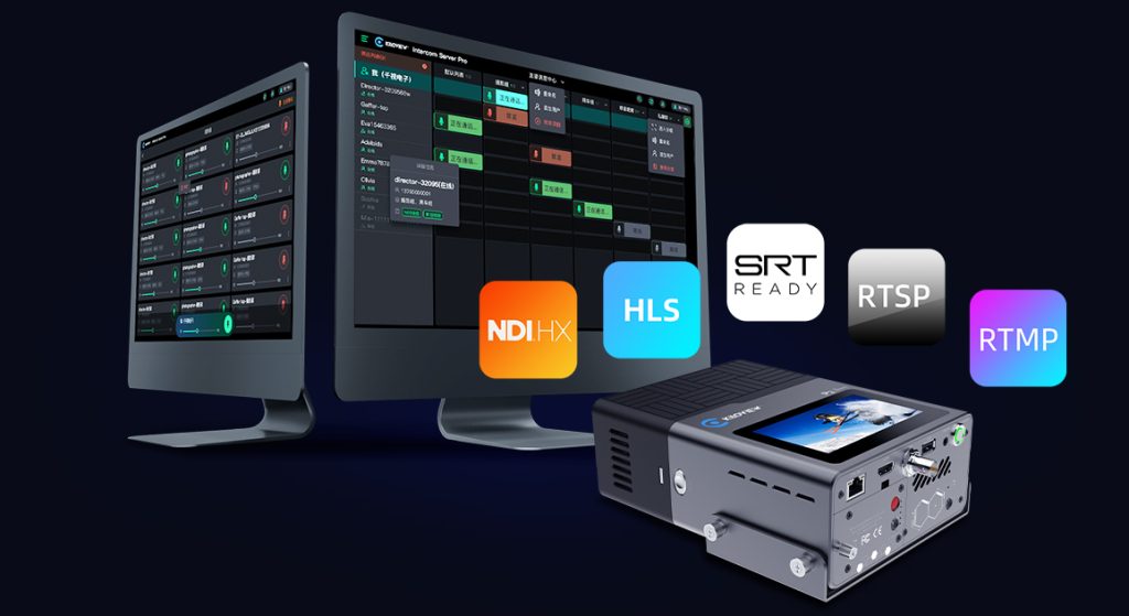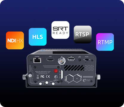 You can transmit signals in various format freely , such as NDI HX/SRT/RTMP/RTMPS/RTSP/RTP/HLS/TS-UDP, etc. When the signal reaches the studio or production center, you don’t need to purchase a receiving server additionally, by just using any brand/model decoder to complete monitoring work.