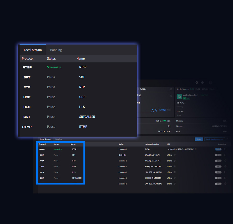 KiloLink Server Pro integtates centralized management and bonding services, distinguishing similar products in the market or its previous generation, and is decided to be permanently free for users. Its main functions include: self-hostable severs, automatic bandwidth load balance, centralized visualization of device management, direct NDI HX streaming+unimited streaming channels, and no need for dedicated receivers on the back-end. These unique features enable users to enjoy stable and reliable bonding live streaming with zero cost.