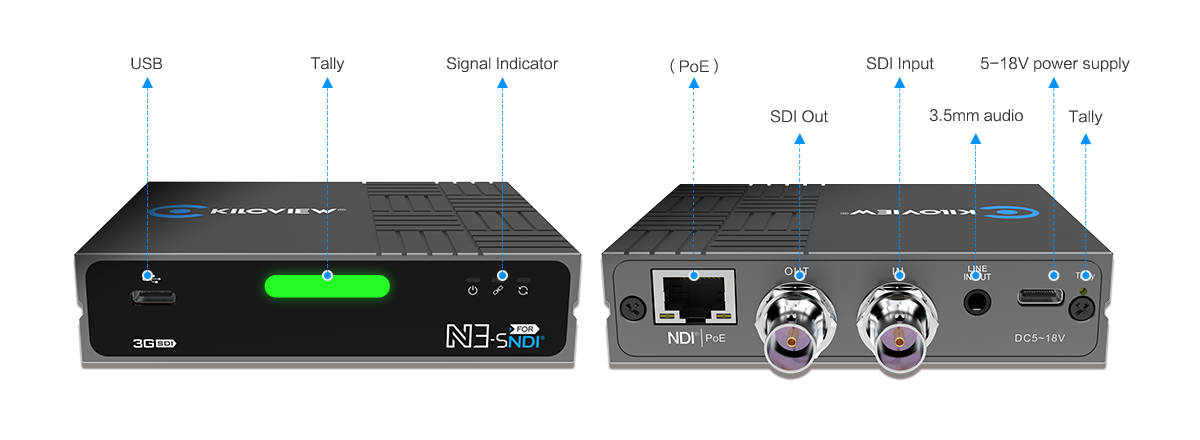 Kiloview N3 3G-SDI/NDI High Bandwidth converter is a bi-directional converter that supports 3G-SDI video input (encoder) to NDI High Bandwidth with 3G-SDI loop through for view on monitor, or 3G-SDI video output (decoder) from NDI High Bandwidth.