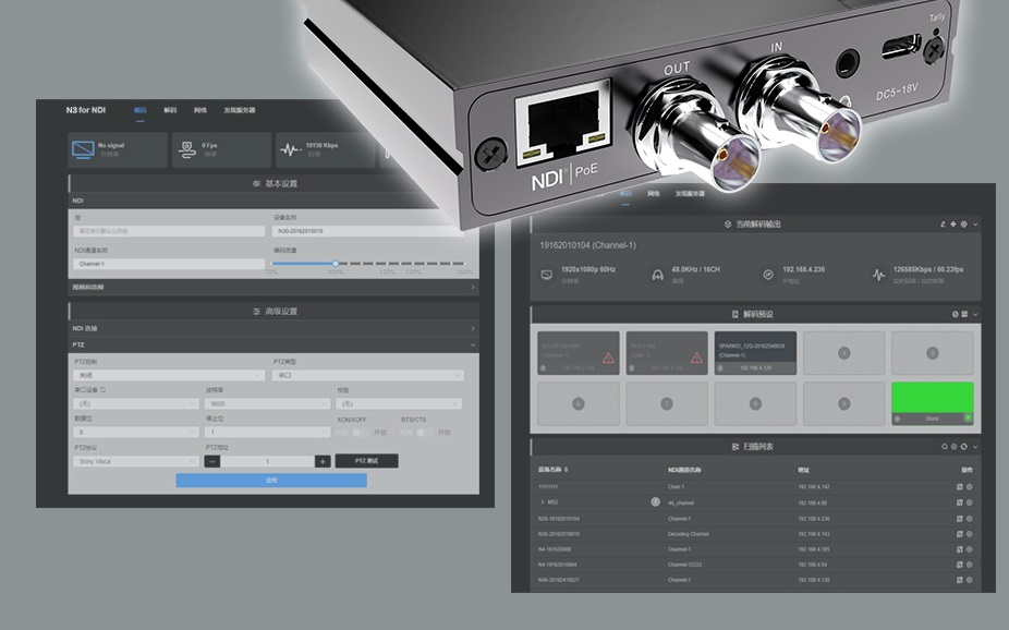 Both NDI encoding and decoding can work on this tiny device (100*80*28mm), you got two in one. Switching the working mode on the UI to choose the mode you need; it can easily meet all your different workflows.