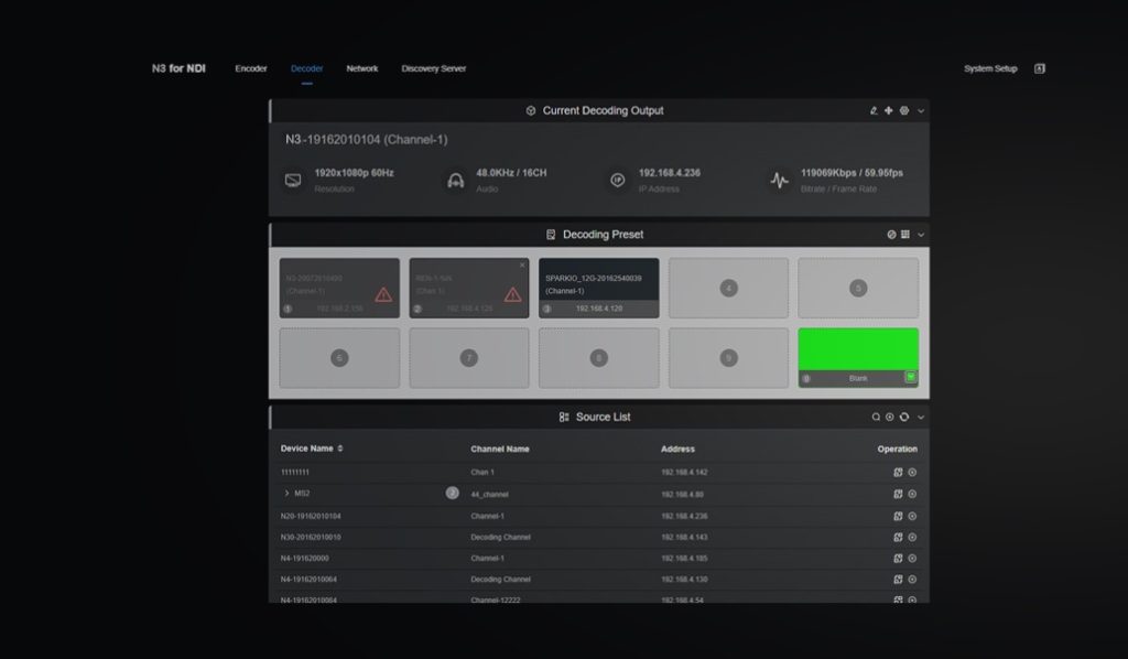 When decoding NDI sources, with Kiloview unique technology, there will be no lag when switching the output NDI videos.