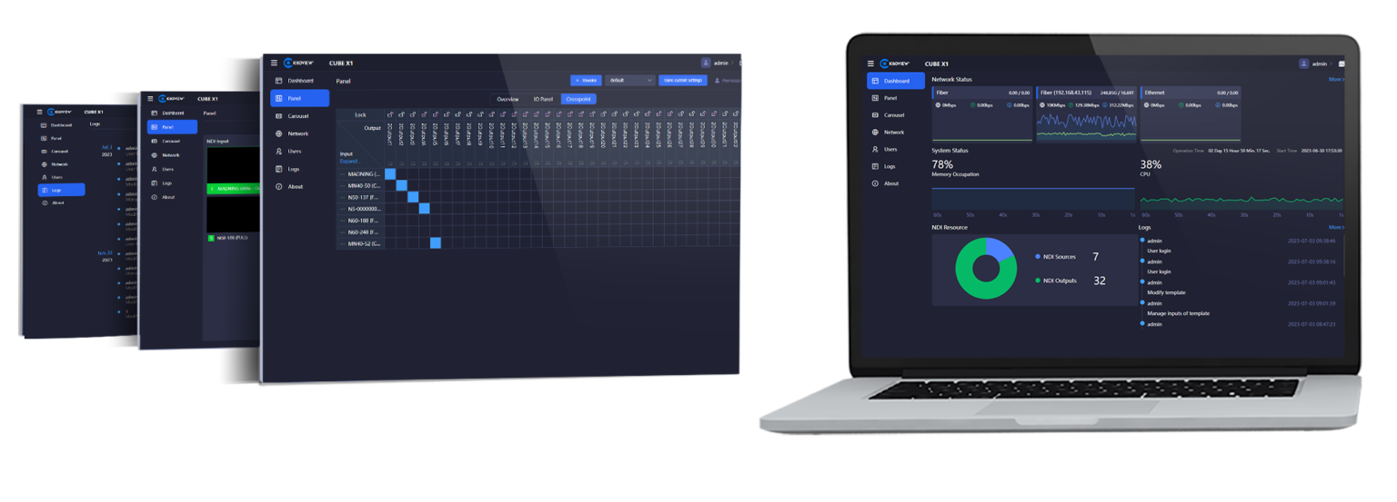 The CUBE X1 is designed for unified scheduling, switching, distribution, and management of all NDI signals, supporting up to 16CH NDI inputs and 32CH NDI outputs (NDI HX). It can achieve seamless switching of all NDI sources and switch without lagging or black screen.