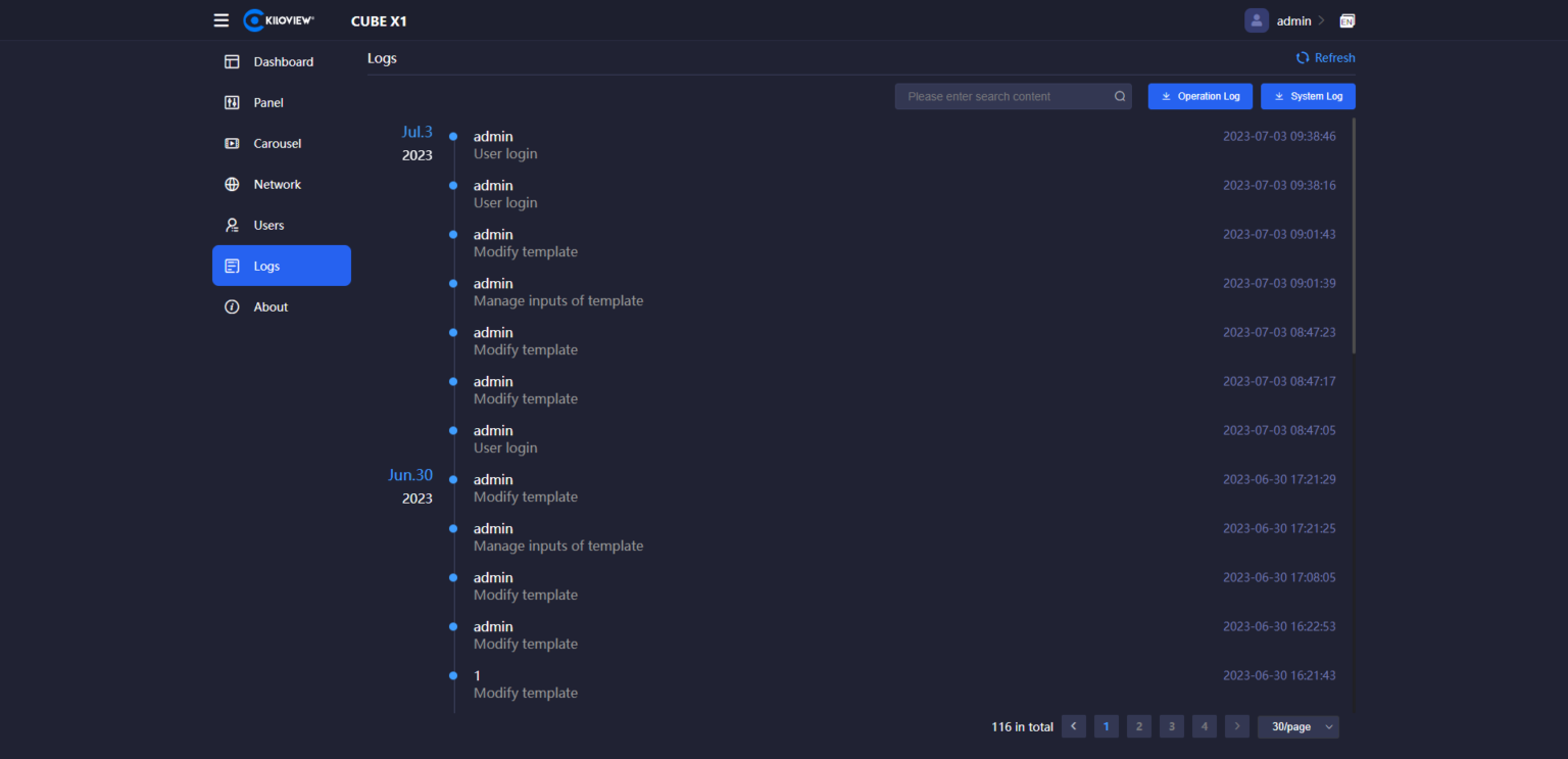 Assigning permission levels to different users, the CUBE X1 allows easy viewing of operation logs and log management at any time.