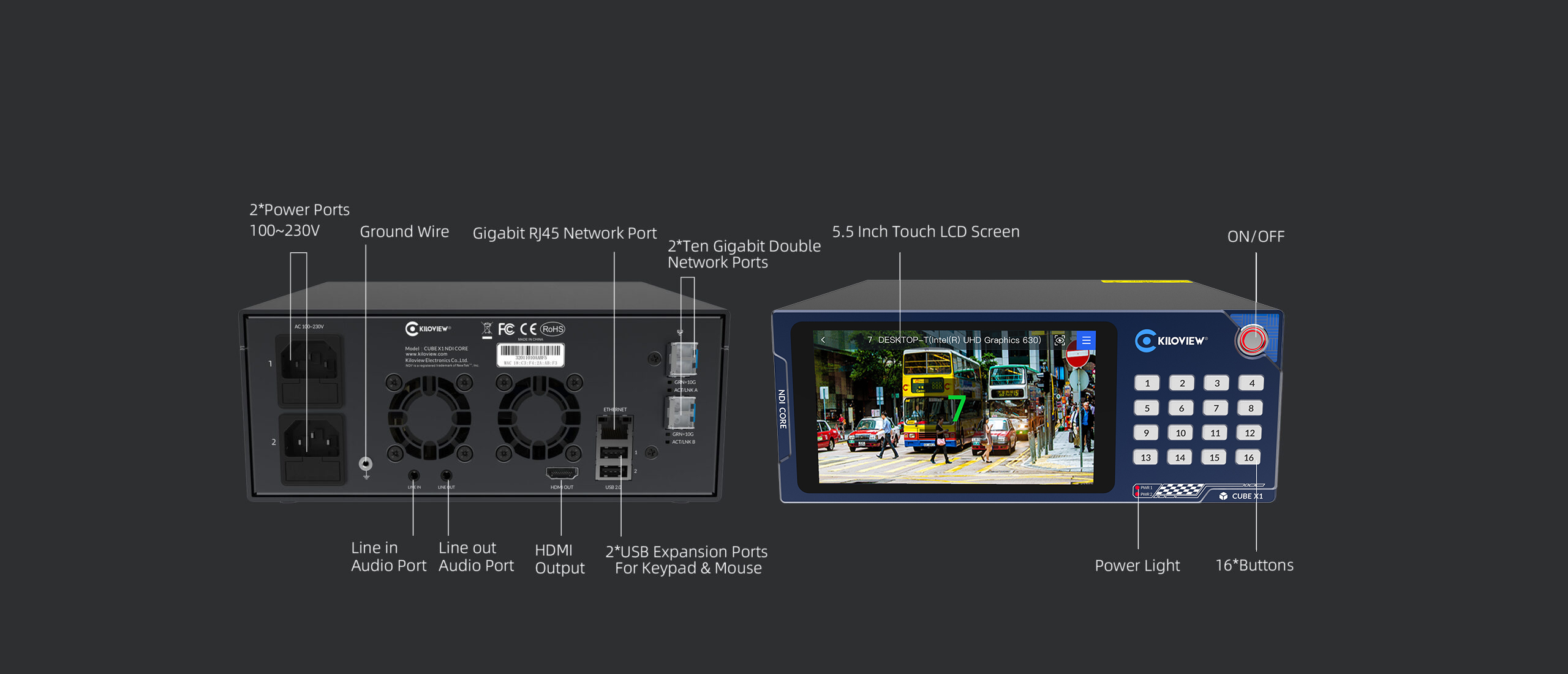 The CUBE X1 NDI Distribution System features with an LCD touch screen and operation button design, the built-in 5.5-inch HD screen will display all the video operations.
