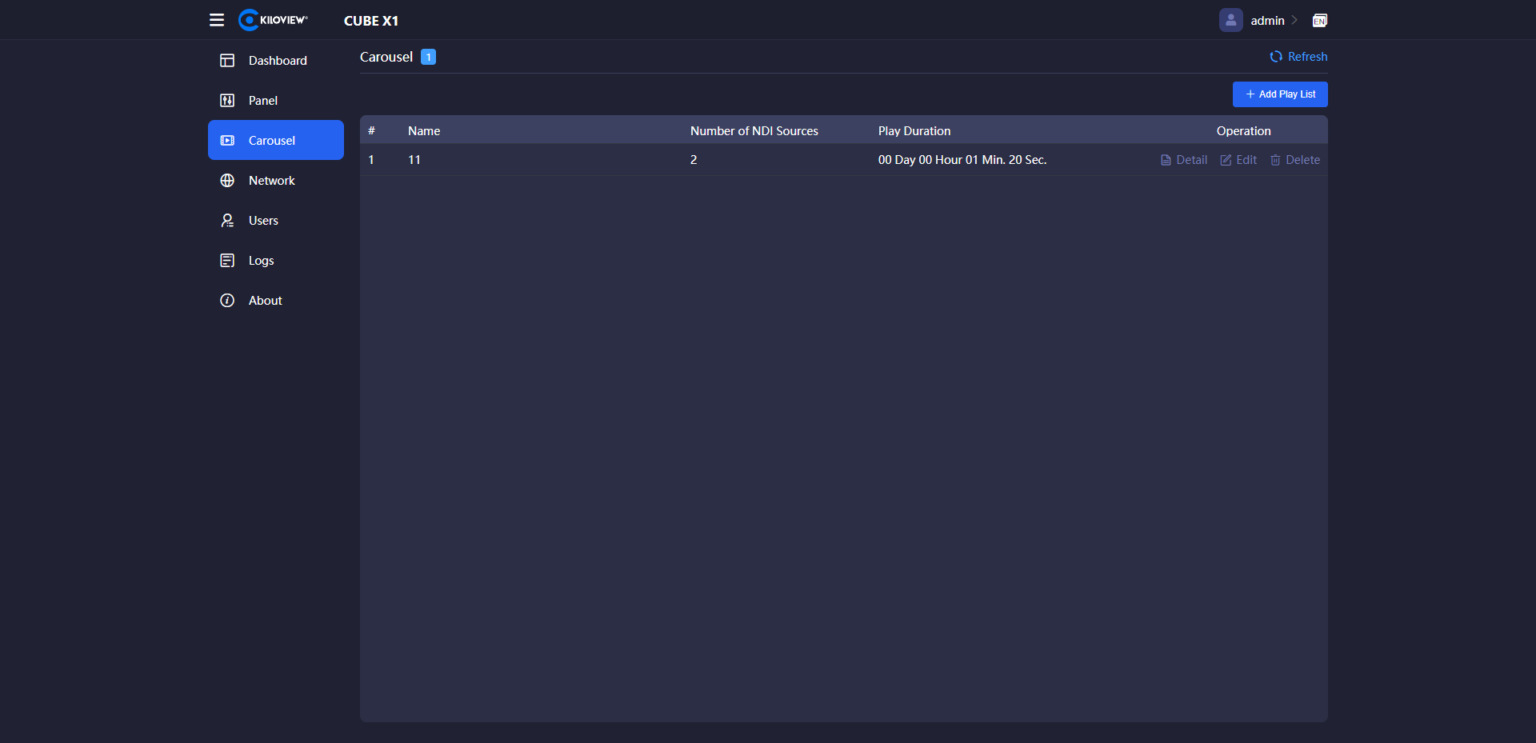 Kiloview CUBE X1 can automatically discover and manually input NDI sources. It is capable of 13 channels of NDI inputs, 26 channels of NDI outputs, copy distribution and switching.